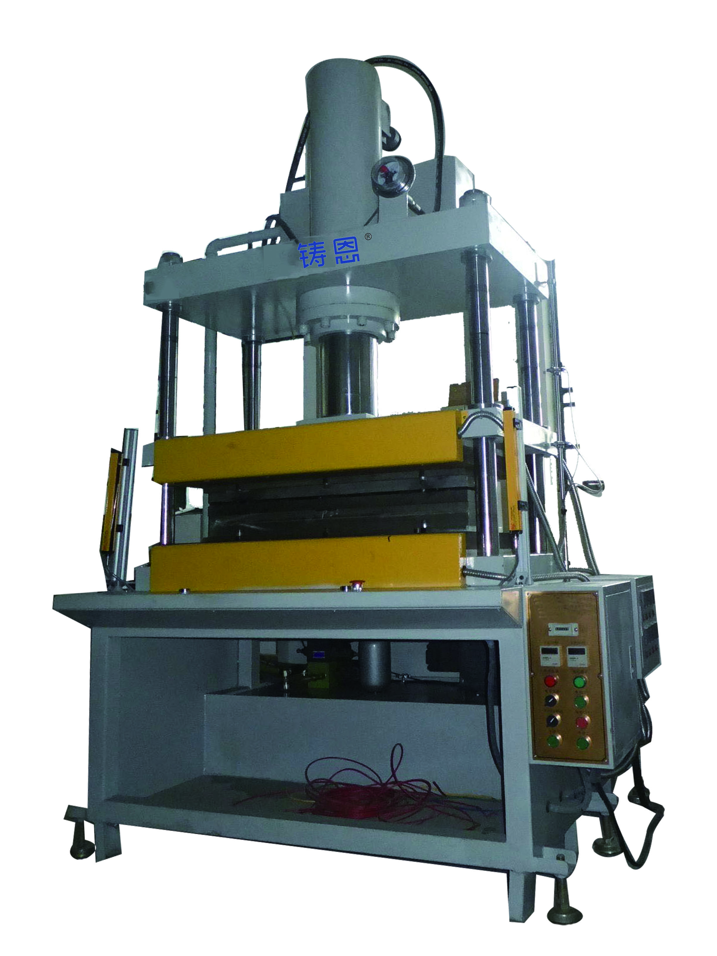 ● High-precision four-column guidance ensures even force distribution, suitable for high-tonnage molding